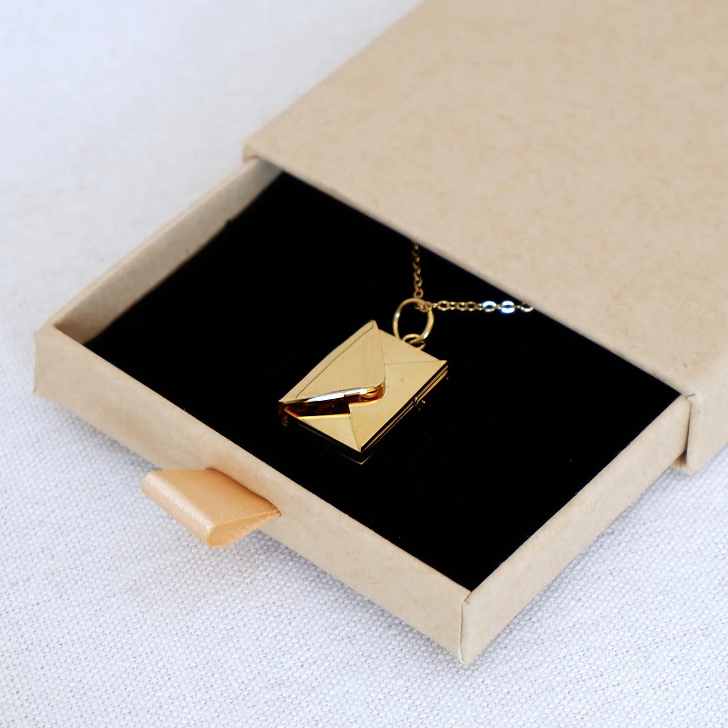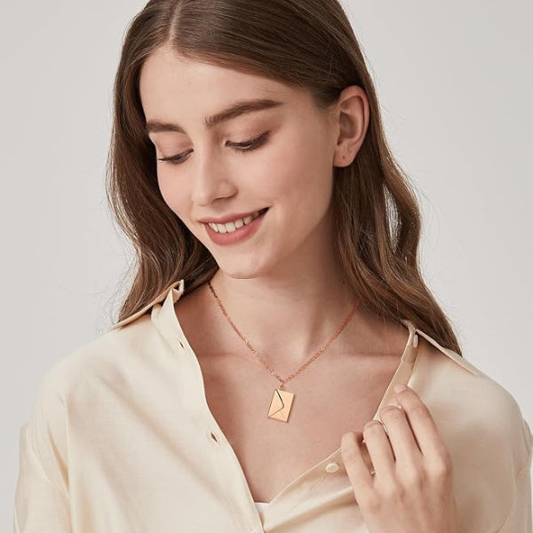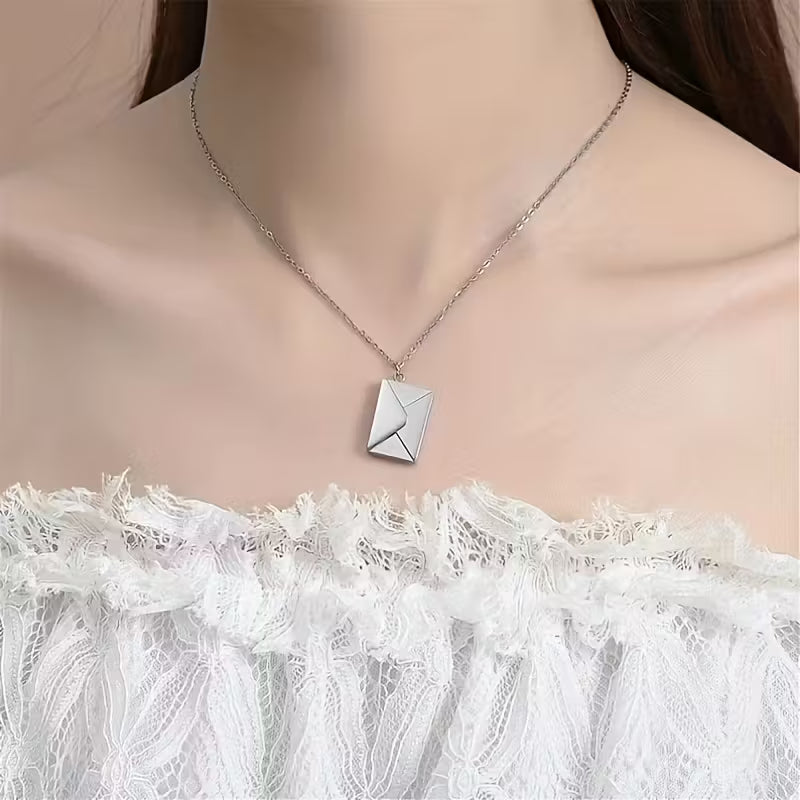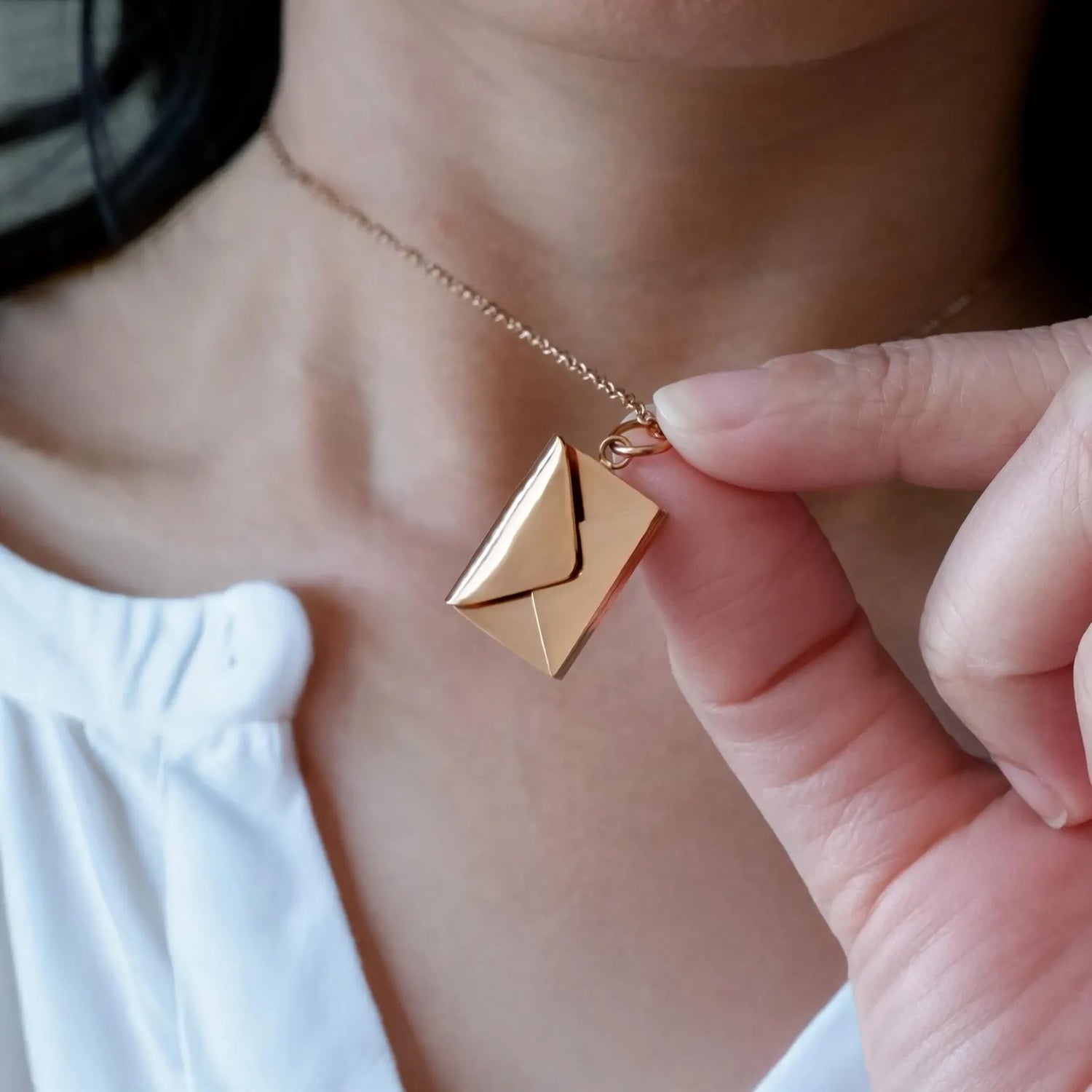 Give a gift that truly touches the heart! This elegant and original necklace can be personalized with a name, message, or special date inside its little envelope.